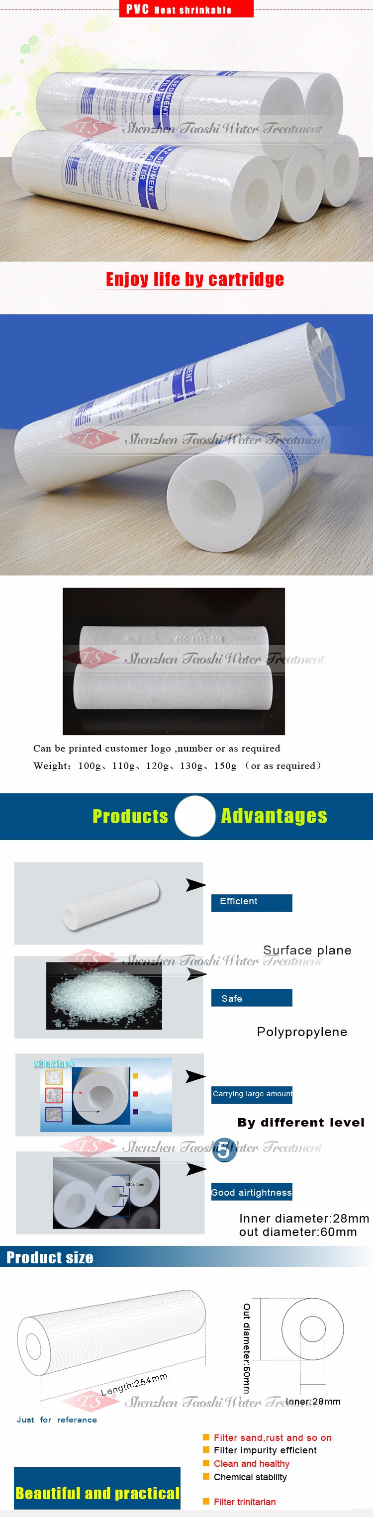 3) PP Filter Cartridge density is controlled to be the lowest to retain more effective micron-pores.